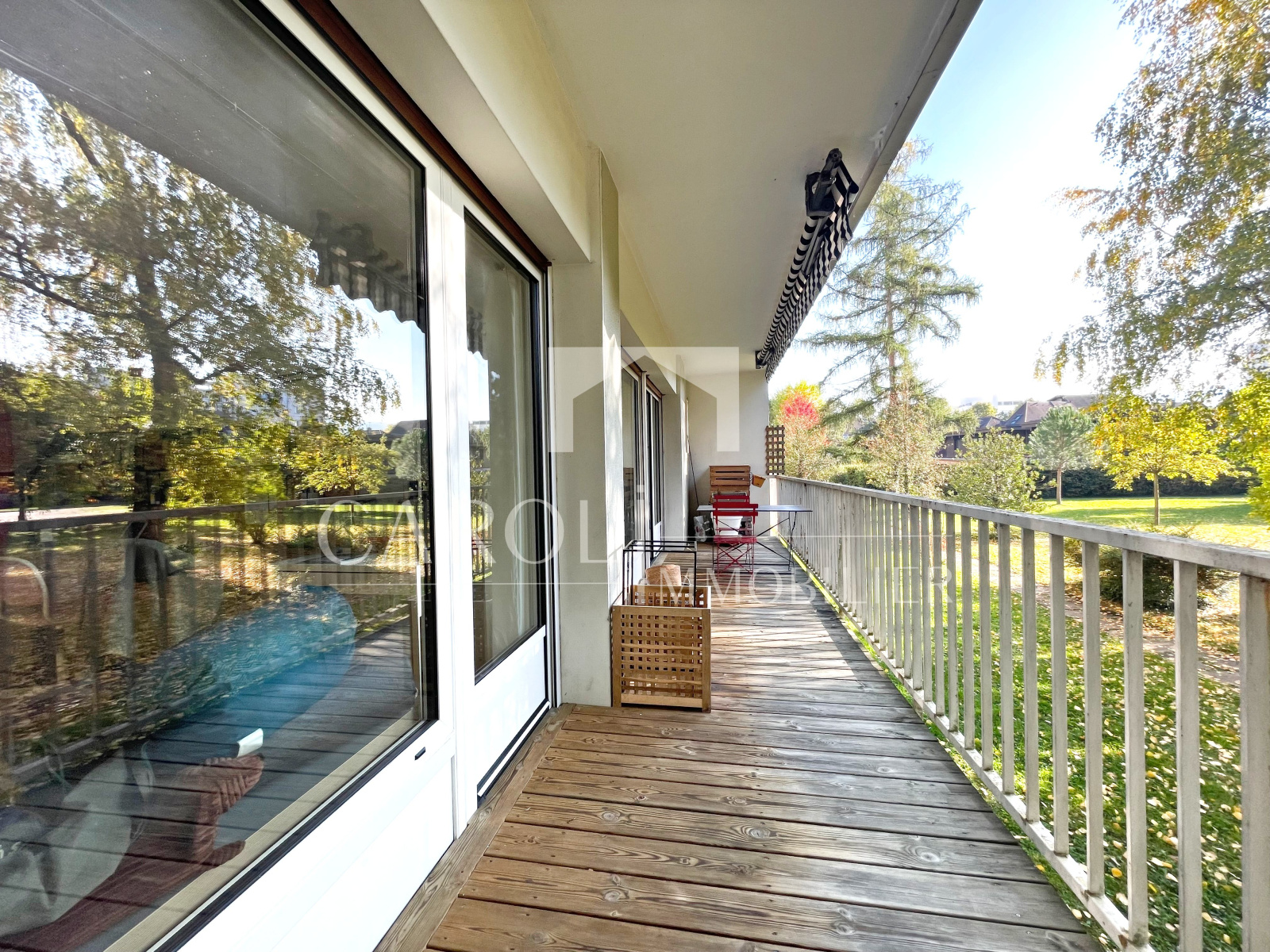Le salon et l’une des chambres s’ouvrent sur une agréable terrasse de 12 m2, offrant une vue dégagée sur un parc arboré sans aucun vis à vis.