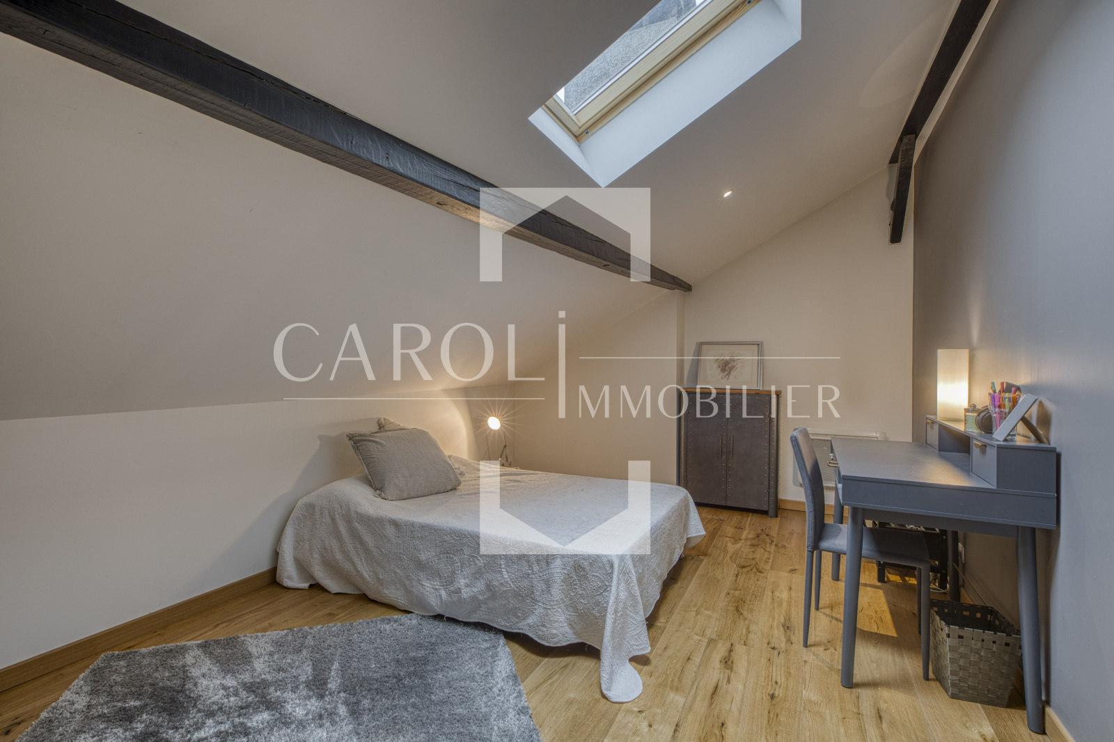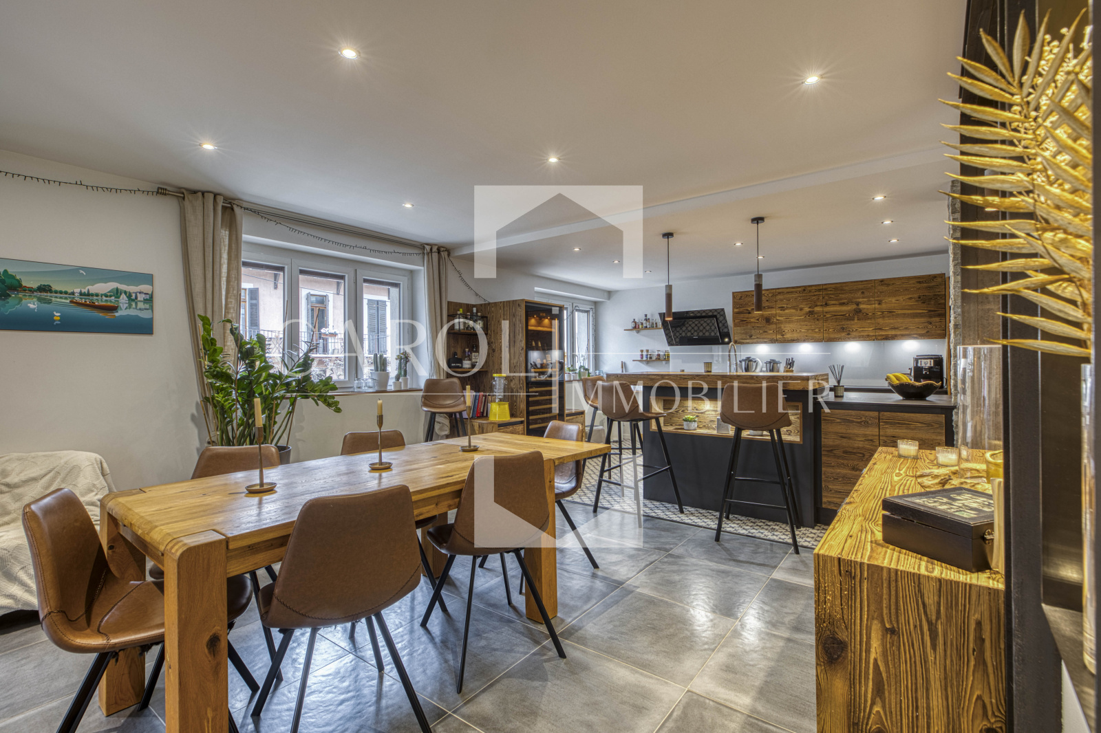 Caroli Immobilier vous propose un appartement situé dans la vieille ville d'Annecy. Au calme, donnant sur une cour intérieure, bel appartement d'environ 183 m2 utiles (131 m2 carrez) avec une grande terrasse. Composé d'une cuisine moderne ouverte sur la salle à manger, d'un séjour avec cheminée, d'un cellier et d'un WC. A l'étage une mezzanine, deux chambres, une salle de bain, une troisième chambre avec salle de bain et dressing, un WC séparé. Chauffage et eau chaude individuels. Pour toutes informations ou pour organiser une visite, contactez Caroline au 06.63.46.67.13 (Agent Commercial au RSAC d'Annecy sous le numéro 850501594) ou par mail à carolinel@caroli-immo.com