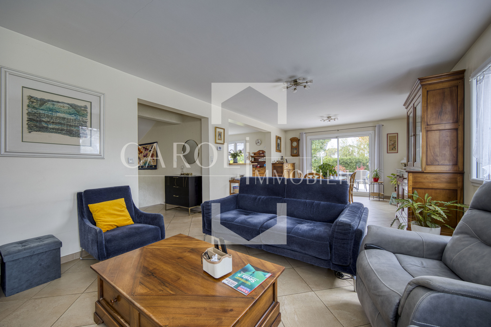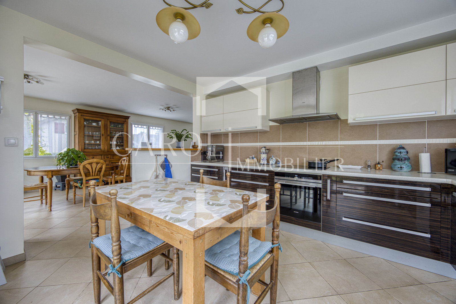 CAROLI Immobilier vous propose cette vaste et lumineuse maison de plus de 180m2 (206 au sol) sur une terrain clos et arboré sans vis à vis de 1550 m2.