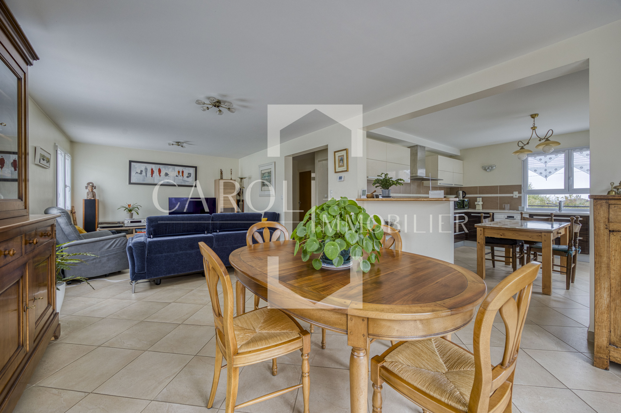 CAROLI Immobilier vous propose cette vaste et lumineuse maison de plus de 180m2 (206 au sol) sur une terrain clos et arboré sans vis à vis de 1550 m2.