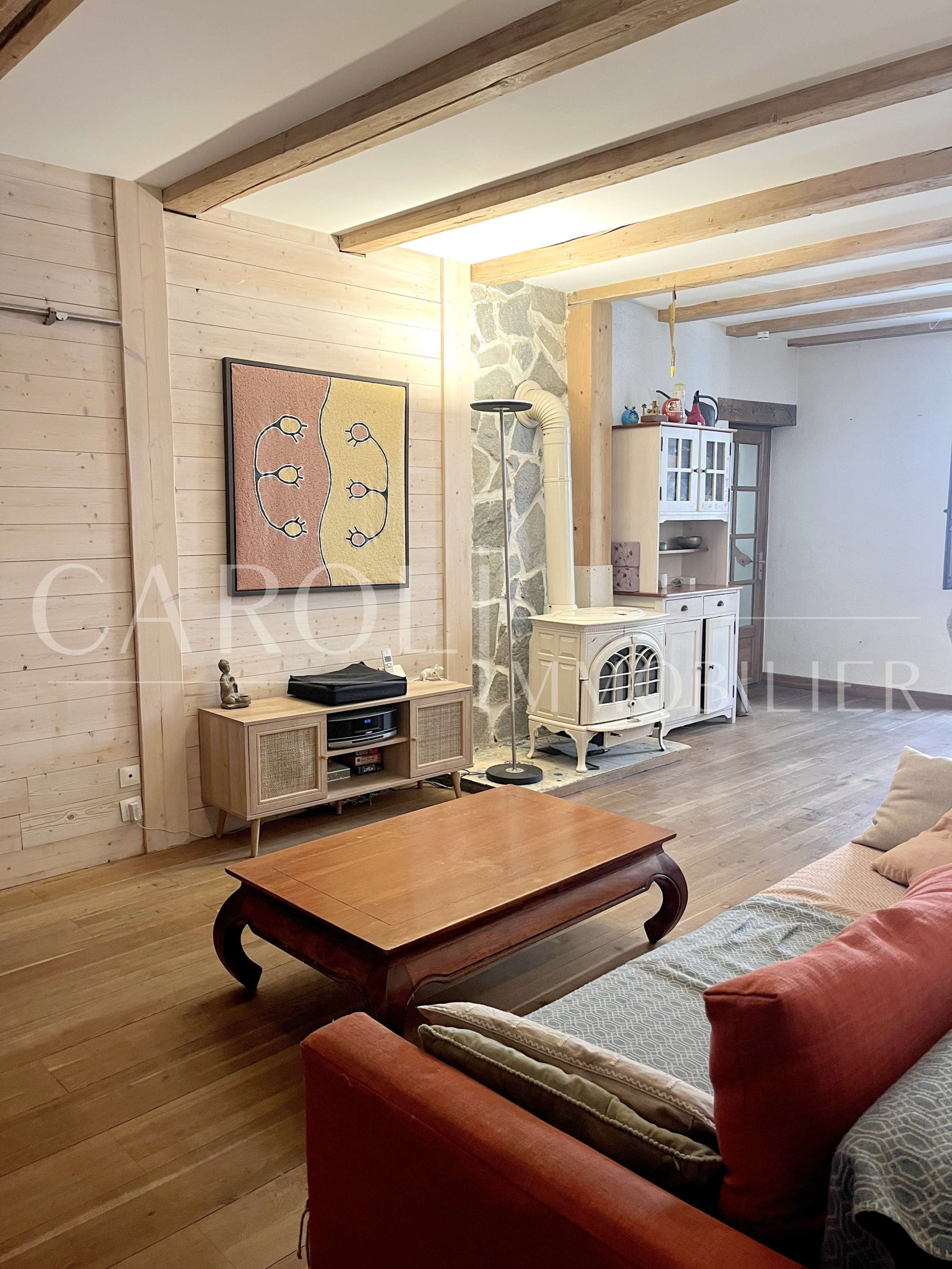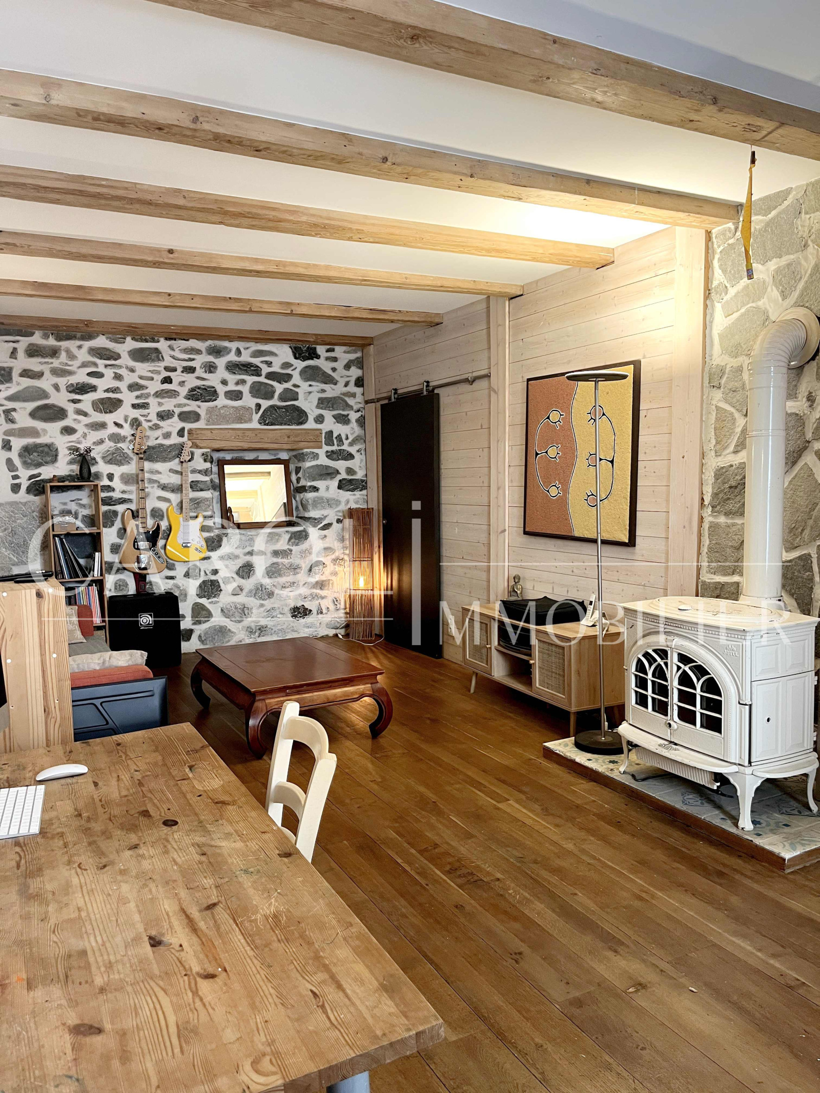 Situé sur une commune en perpétuel mouvement, ses commerces et sa vie de "village"' sauront vous cueillir. L'appartement offre des pièces agréables à vivre avec le charme du bois et de la pierre apparente, son poêle à bois et sa chambre voûtée vous séduiront. Situé au 1e étage d'une petite copropriété (2 étages) avec faibles charges (-30€/mois) il comprend une cuisine dinatoire de 14m2 indépendante équipée, un espace salon douillet de plus de 28m2, de deux chambres, une salle d'eau et un dressing indépendant.