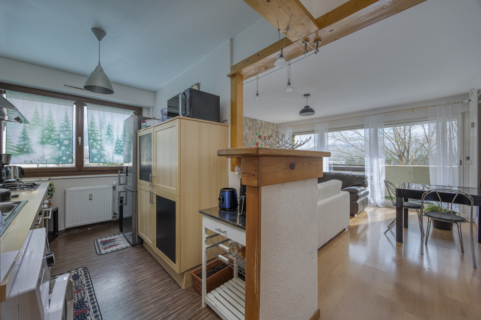 Situé à seulement 200 mètres de la douane de Veyrier et à deux pas des transports et des commerces, cet appartement lumineux est actuellement loué (location meublé - fin de bail possible en juillet 2027)