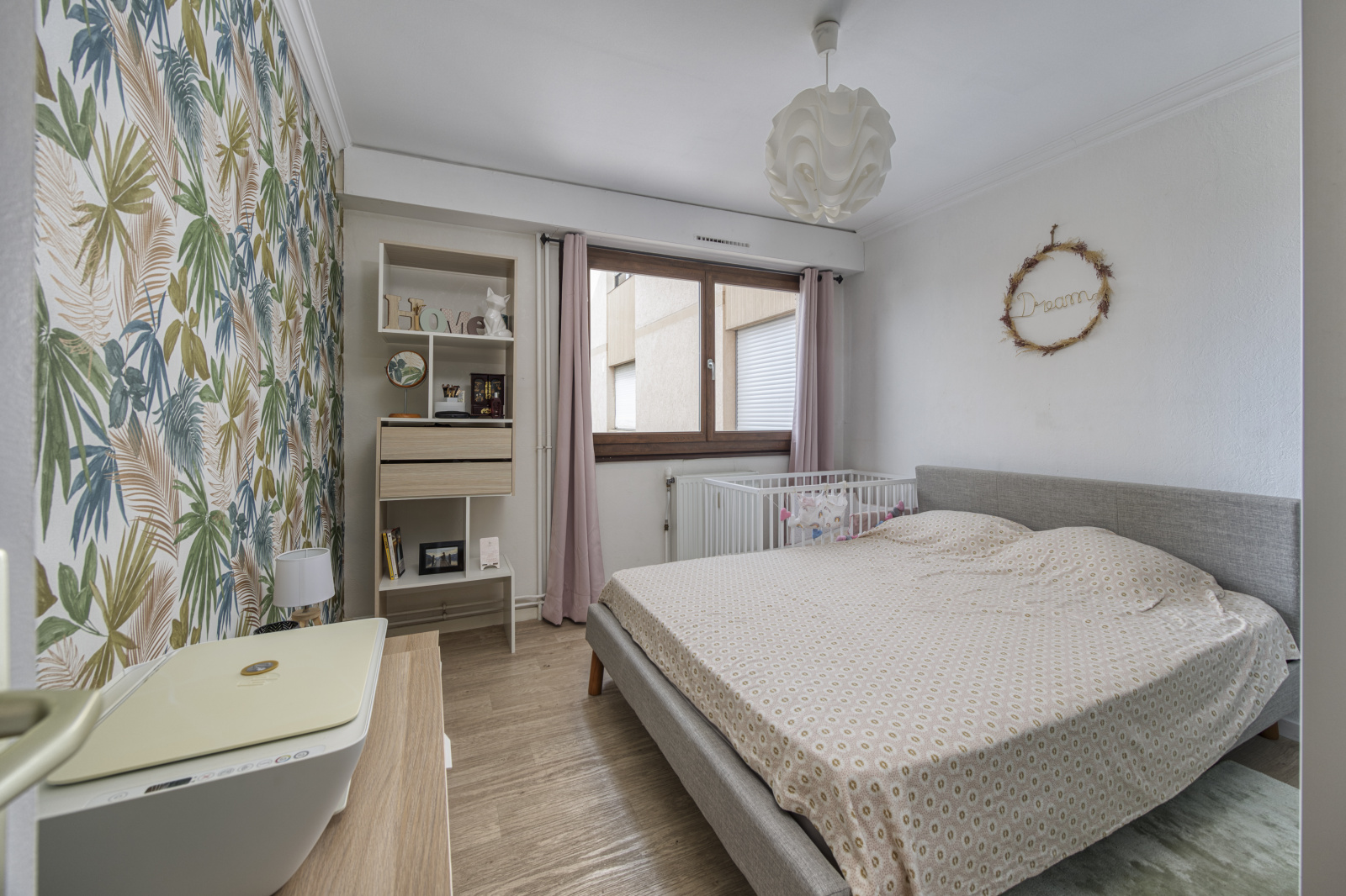 L'entrée vous acceuillera sur une cuisine ouverte sur un salon lumineux donnant sur un balcon de 6 m² exposé plein sud, vous surprendra par sa vue dégagée sur le Mont Salève. La partie nuit est quant à elle composé de 2 chambres de 9 m² et 12 m² au calme.