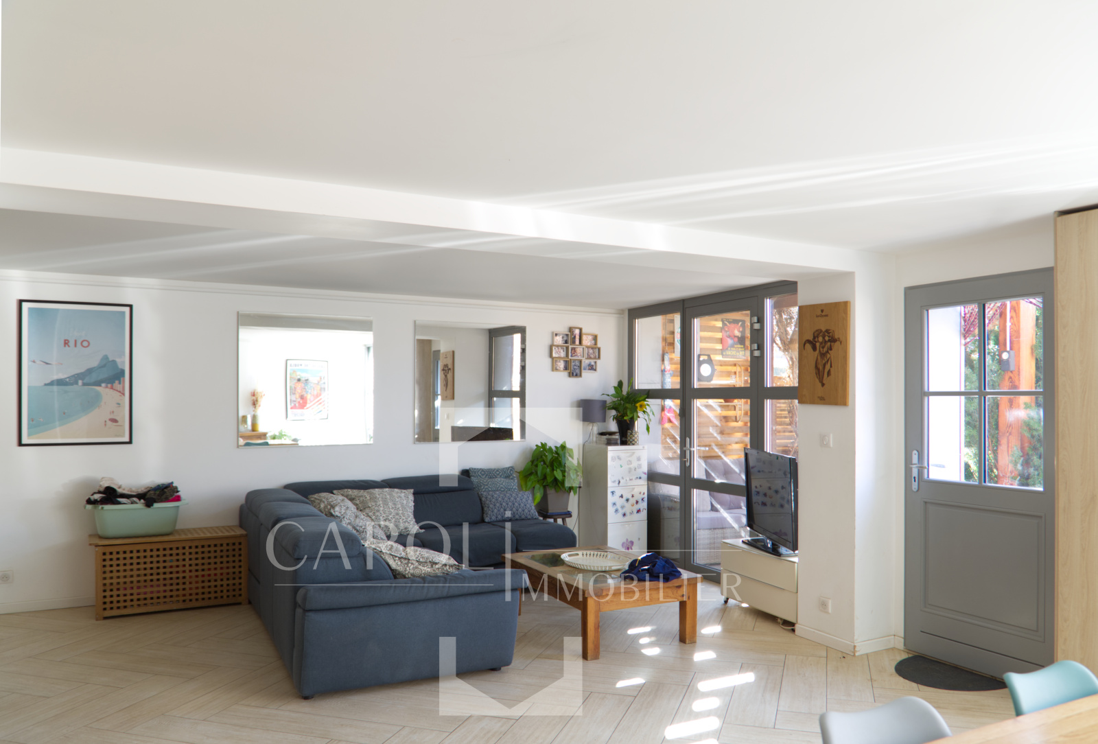 Caroli immobilier vous présente ce spacieux appartement T4 de 105m2, entièrement rénové avec beaucoup de goût, en rez de jardin.