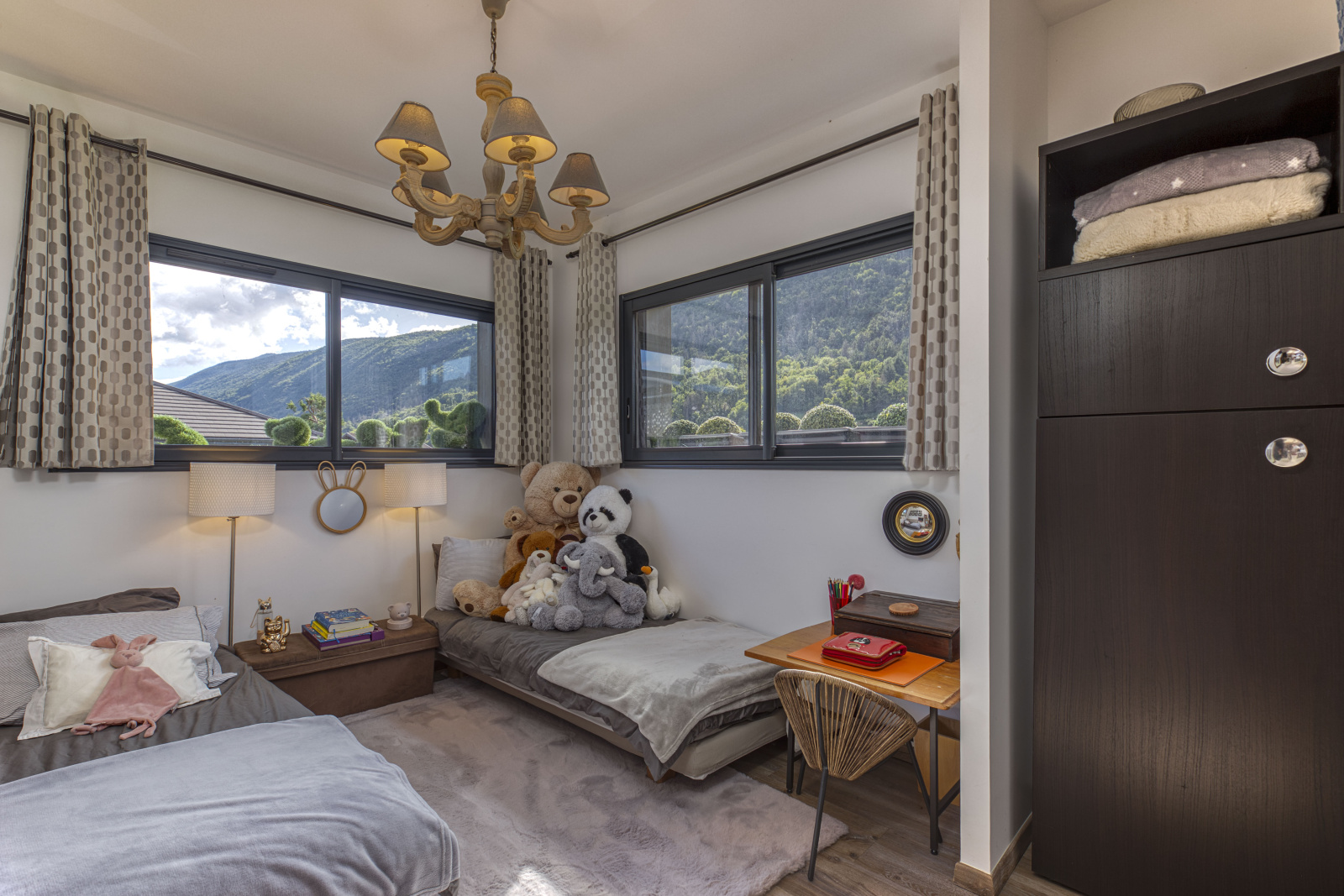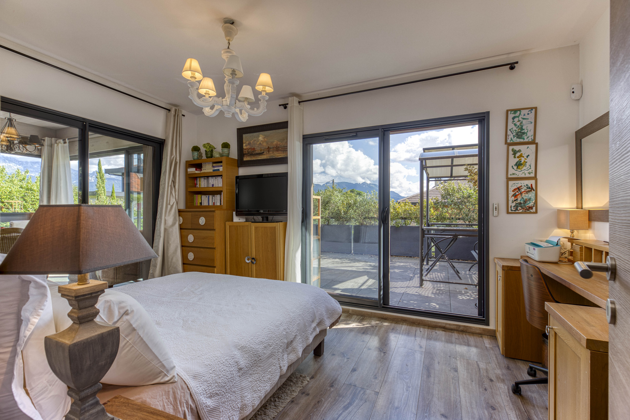- Calme et intimité : quartier résidentiel au calme, sans vis-à-vis, avec une petite échappée sur le lac depuis l’étage.
