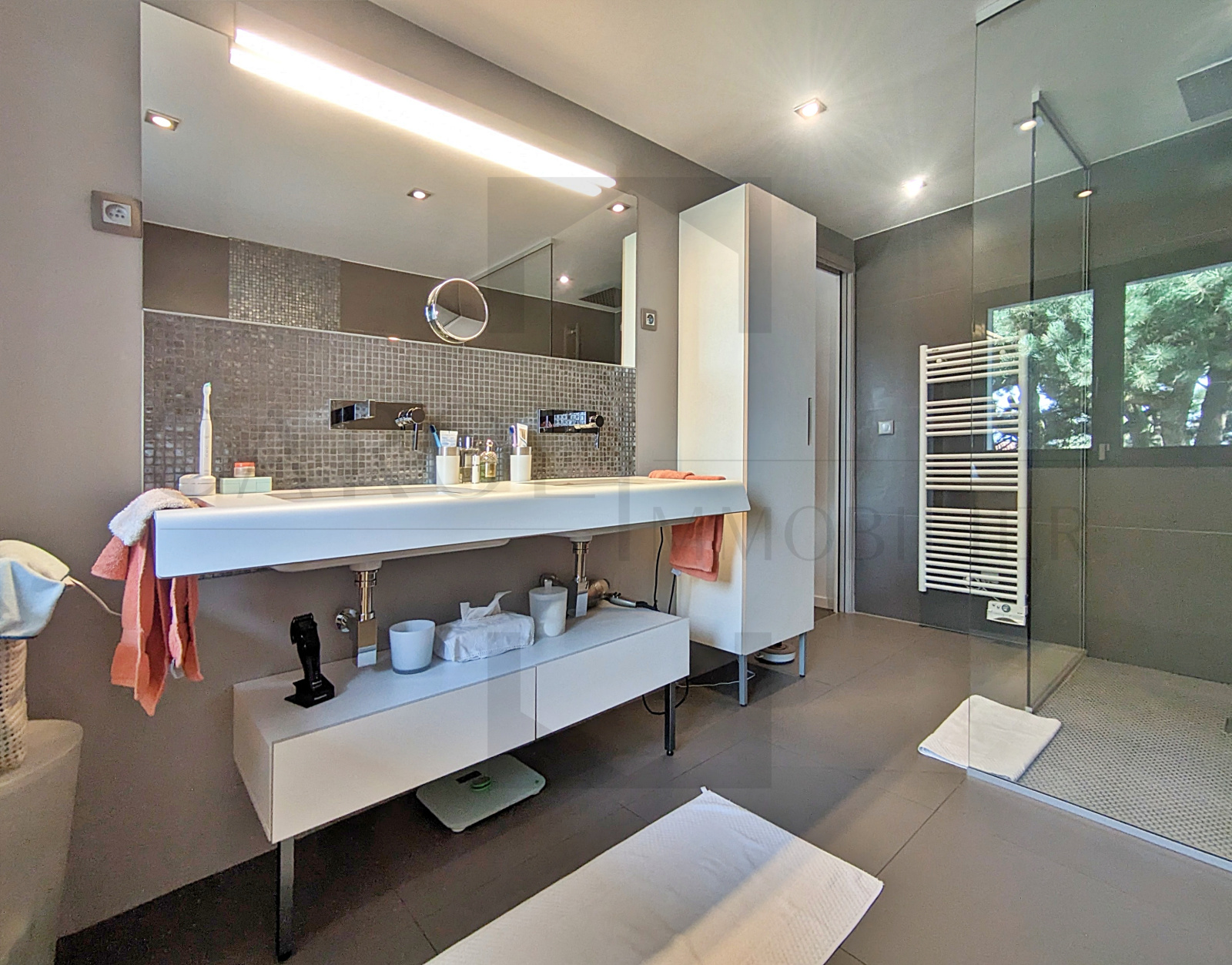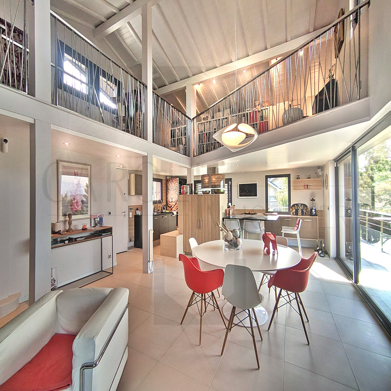 La maison est équipée d'une pompe à chaleur pour le chauffage au sol, d'une climatisation réversible, d'un poêle à bois, assurant un confort optimal toute l'année, de stores BSO, d'un système de sécurité complet etc.
