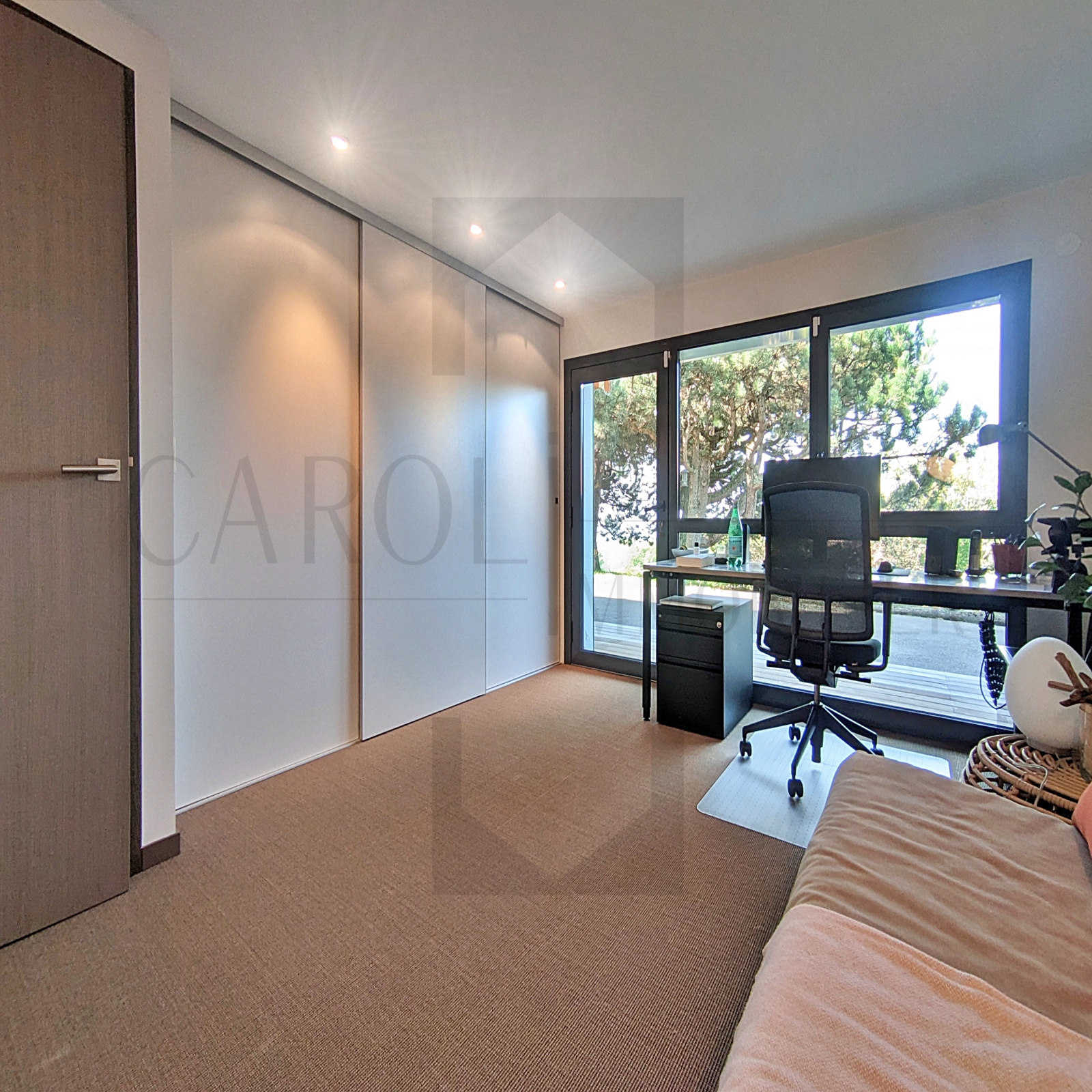 À l'entrée, un sas d'entrée vitré accueille vos invités, ajoutant une touche élégante dès le premier regard.