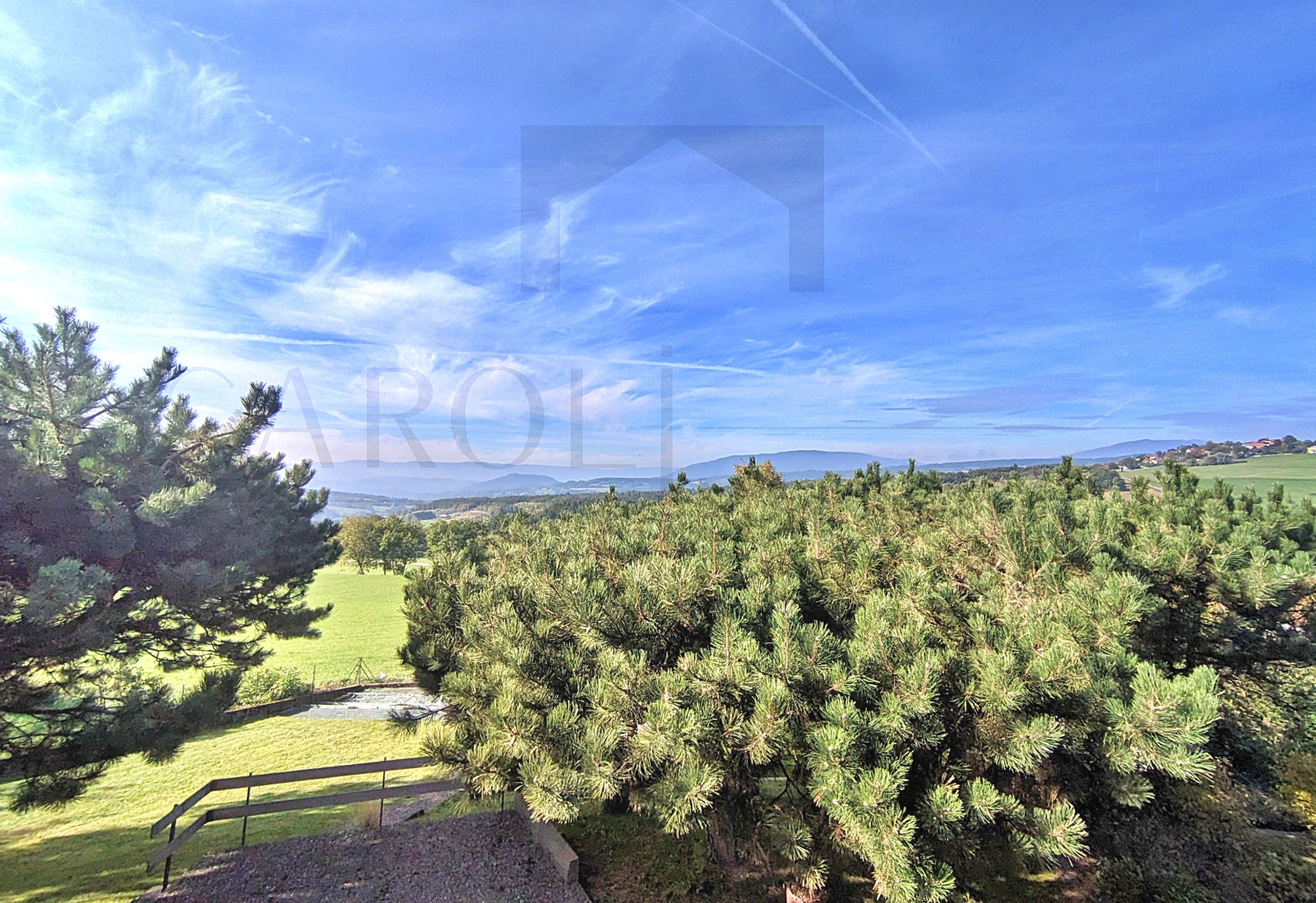 Caroli immobilier vous propose cette magnifique maison de 5 pièces située à Copponex, idéalement positionnée sur l'axe Annecy - Genève, avec une entrée d'autoroute à seulement 1 minute. Nichée sur un terrain arboré de 1405 m2, cette maison offre un intérieur élégant et lumineux réparti sur trois niveaux.