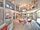 Au troisième niveau, une grande mezzanine offre un espace polyvalent, et un grenier offre un espace de stockage supplémentaire.