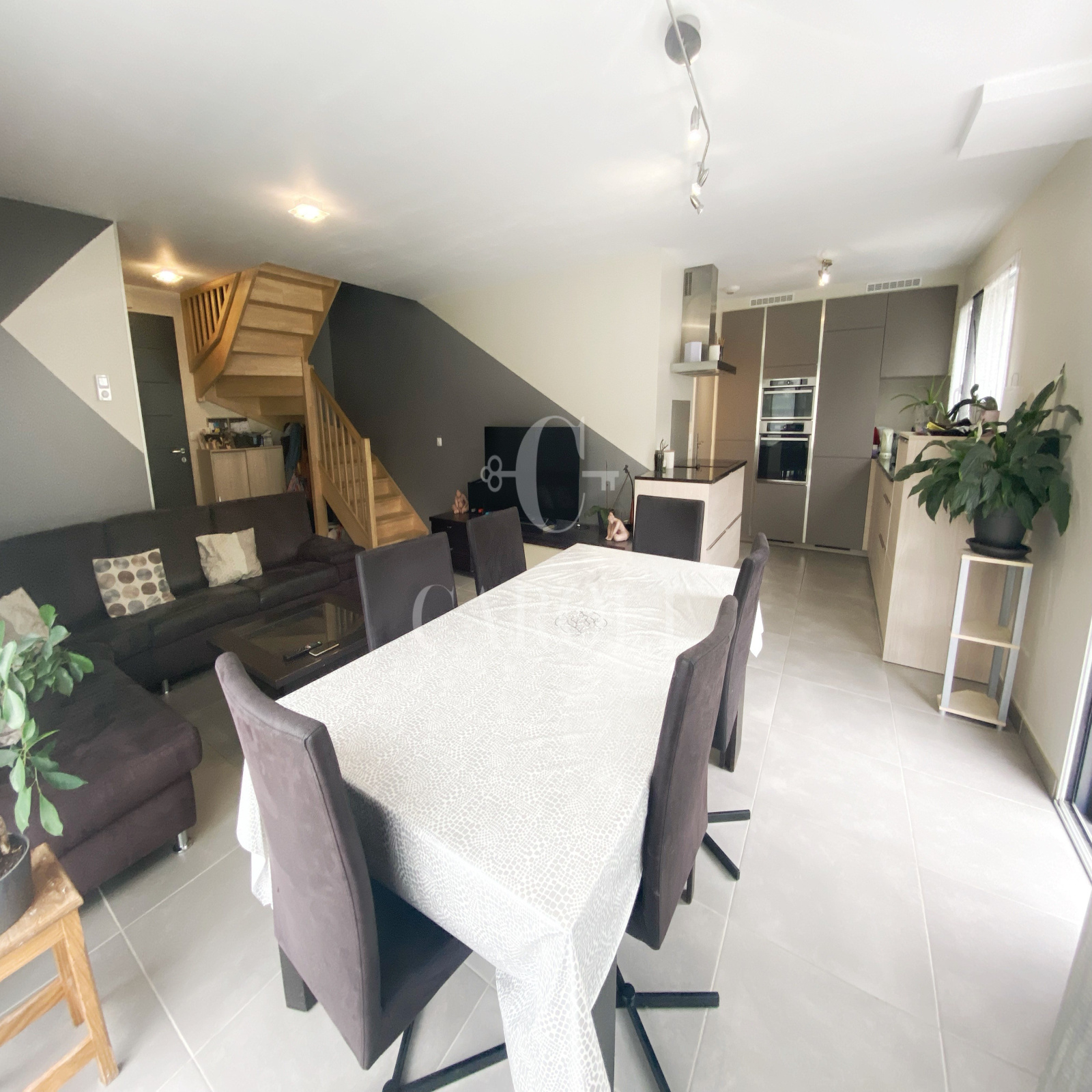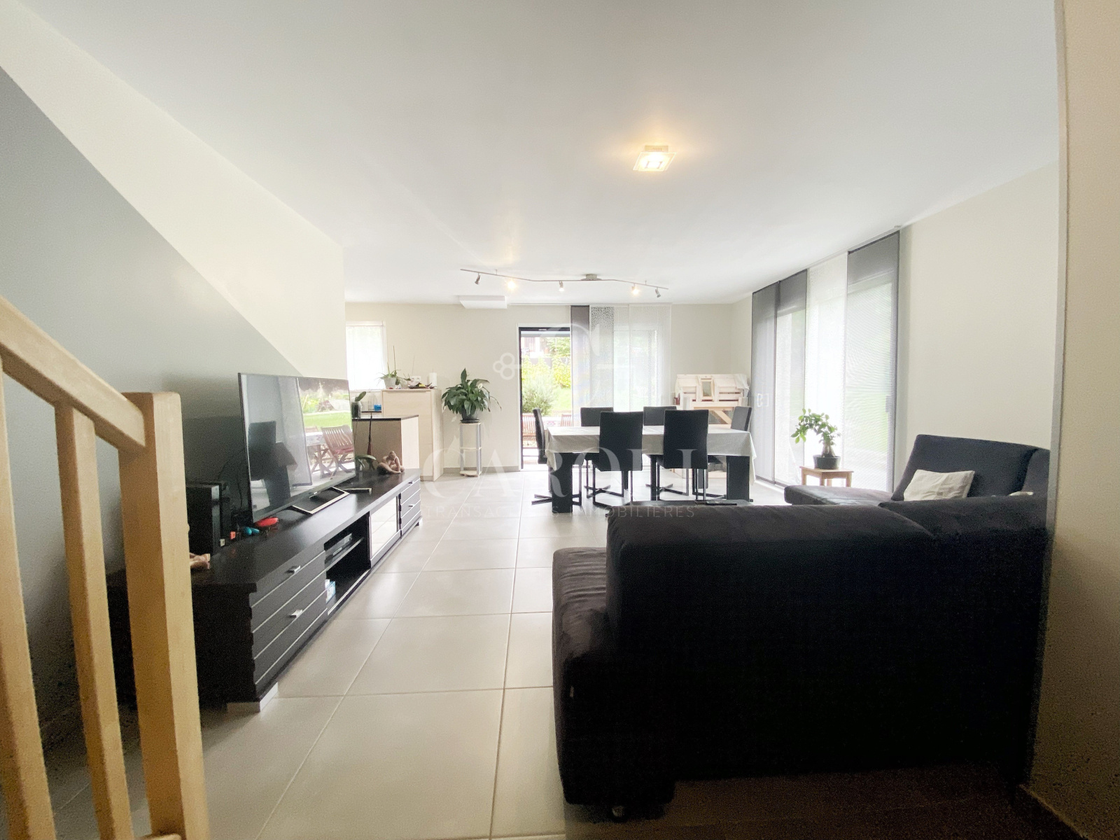 Poisy 74330 CAROLI TRANSACTIONS IMMOBILIÈRES vous propose cette agréable maison jumelée de 2017 d'une surface de 92m2 sur un terrain d environ 300m2, une grande terrasse de 40m2 et un jardin d'environ 150m2, dans un quartier calme de la commune de Poisy. La maison dispose d'une grande pièce de vie avec cuisine ouverte et équipée sur le séjour avec un accès à l'exterieur. Un toilette avec grand placard buanderie sur mesure et un garage sont également accessibles au rez de chaussée. A l'étage, le dégagement donne l'accès à chacune des trois chambres dont une parentale avec un dressing puis d'une grande salle de bain/toilette composée d'une grande douche et d'une baignoire. Le rez de chaussée est chauffé au sol. Pour plus d'informations ou pour organiser une visite, contacter Juliette au 06.61.19.63.25 (Agent Commercial au RSAC d'Annecy sous le numéro 839121126) ou par mail à juliette@caroli-immo.com - Visites 7/7