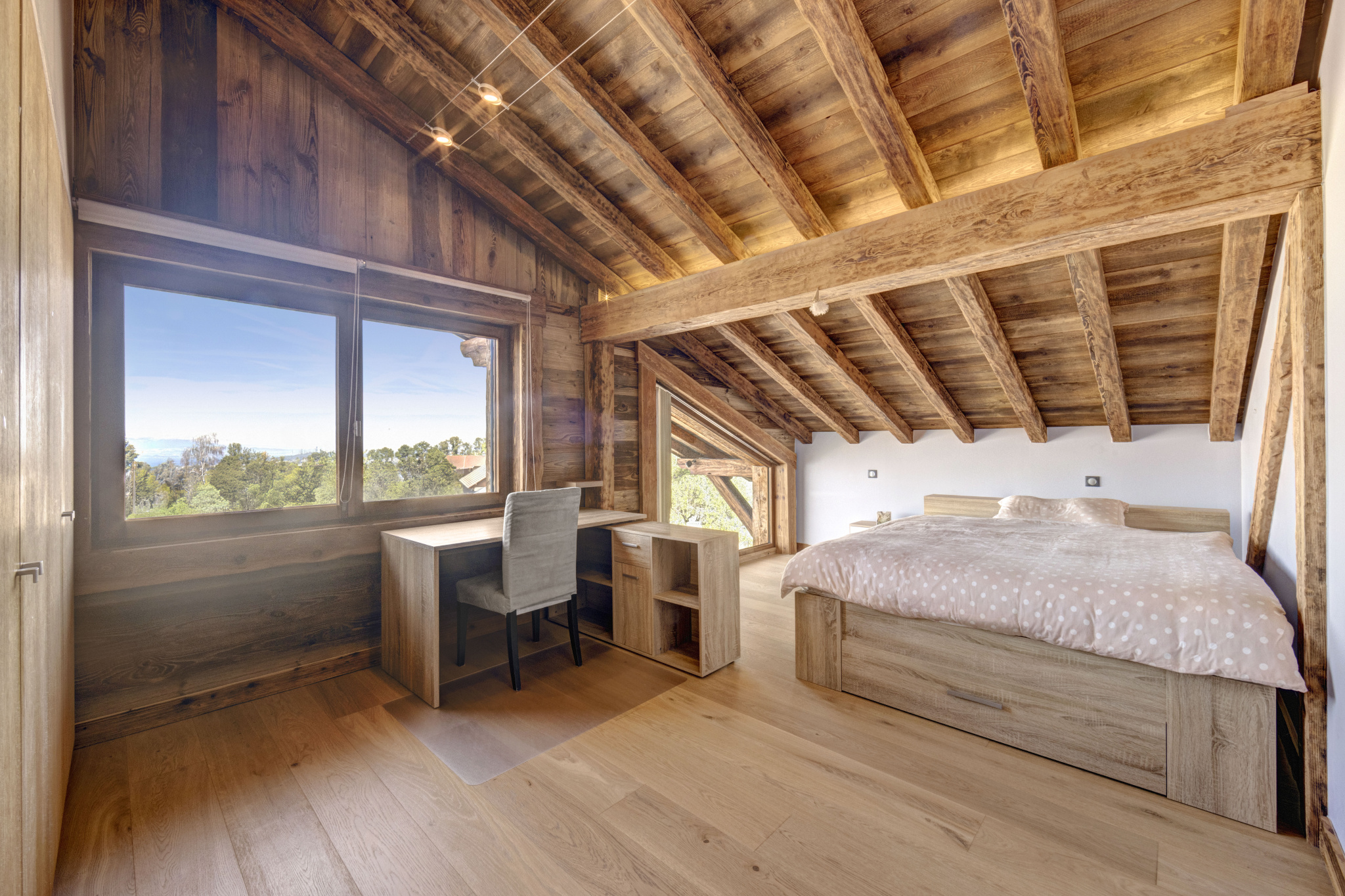 Implanté sur un magnififique terrain plat et paysagé de 1600 m2 ,ce chalet offre environ 320 m2 habitable et beneficie d'une vue panoramique sur le Mont Salève et le Bassin Genevois .
