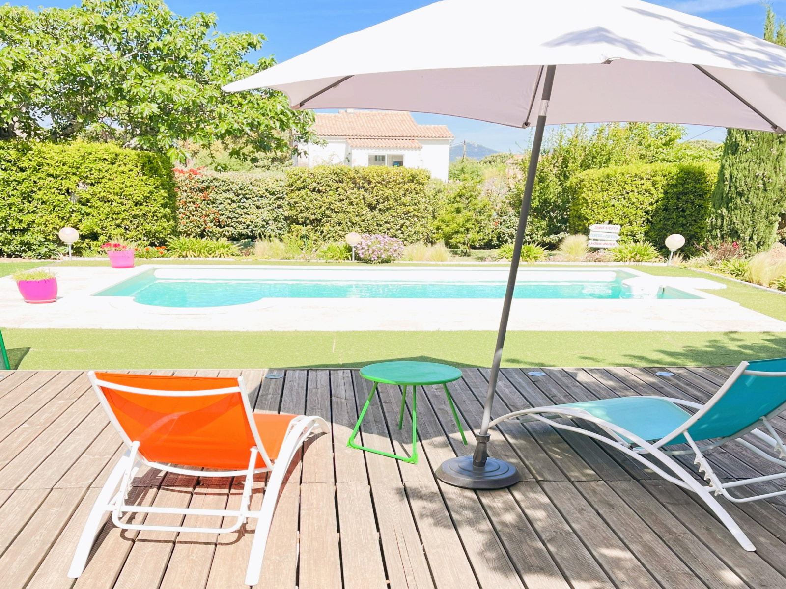 Dans un quartier calme et résidentiel à quelques minutes du village de Saint-Tropez, sur la commune de Gassin, je vous propose cette jolie maison familiale à taille humaine de 160m² avec 5 chambres sur un beau terrain de 1800m2 avec piscine. La maison propose au rez-de-chaussée, un logement de 5 pièces, avec terrasses, 3 chambres, salon, salle à manger, cuisine aménagée, salle de bains, wc, buanderie. Au 1er étage, un appartement de 4 pièces, 2 chambres, véranda, salle de bains, wc et jolie vue dégagée sur le jardin. Au calme et à quelques minutes de la mer et des commodités, la maison offre un joli cadre de vie Renseignements Carole PATRONE 06.59.75.20.66 CAROLI IMMOBILIER GOLFE DE SAINT-TROPEZ. Possibilité vidéo sur demande. Que vous soyez à la recherche d'une résidence permanente ou d'une maison de vacances, cette maison est un bon choix. Un bien rare sur le secteur!. ANNEXES- Pool house, cabanons, carport 3 voitures, puit, forage