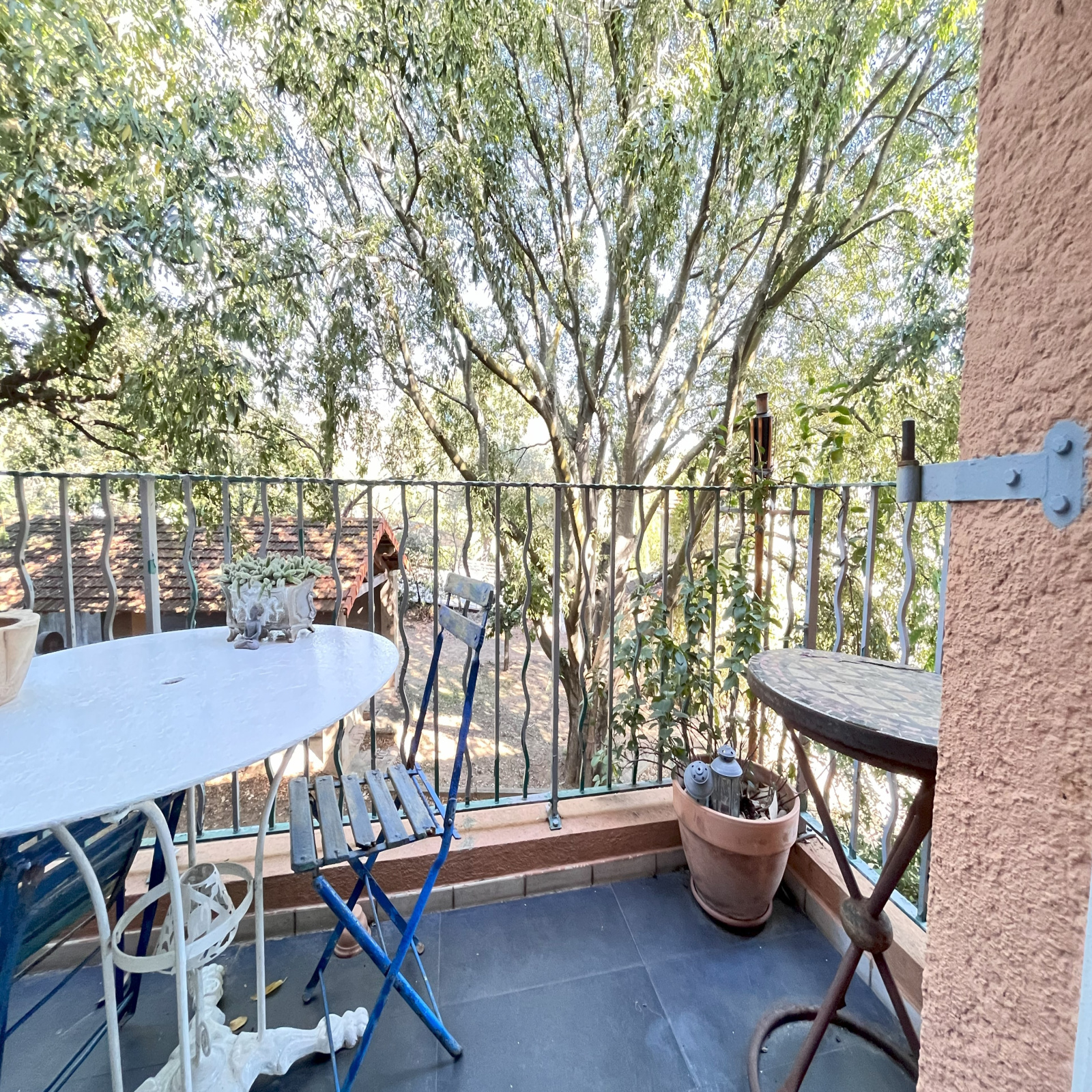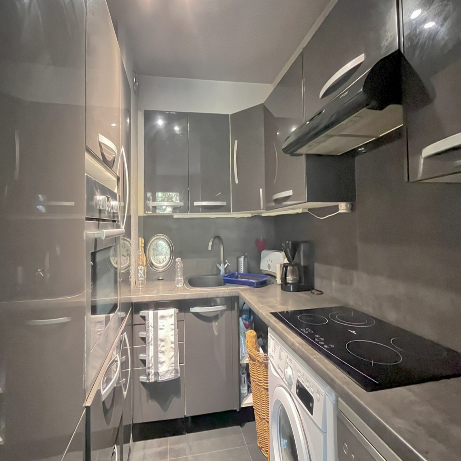 L'appartement comprend une entrée, une cuisine aménagée, un salon avec un balcon donnant sur verdure, une chambre, une salle d’eau et toilettes séparées. Un box en sous-sol.
