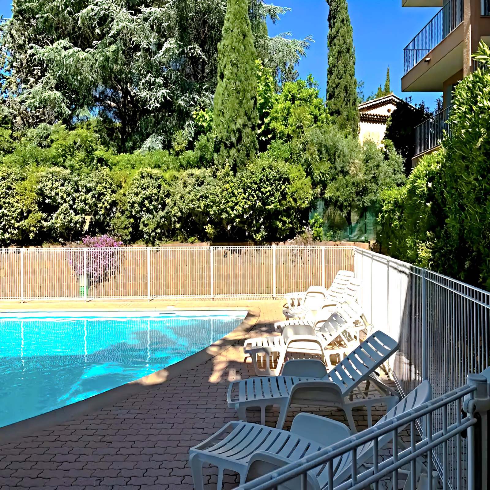POUR INVESTISSEMENT À LONG TERME, ce bien est vendu loué 780€/mensuel. Libre au minimum en octobre 2030 sous condition de reprise.CAROLI IMMOBILIER vous propose en exclusivité à deux pas du village de Grimaud, un deux pièces de 42m² au deuxième étage d'un immeuble récent avec ascenseur et piscine extérieure.