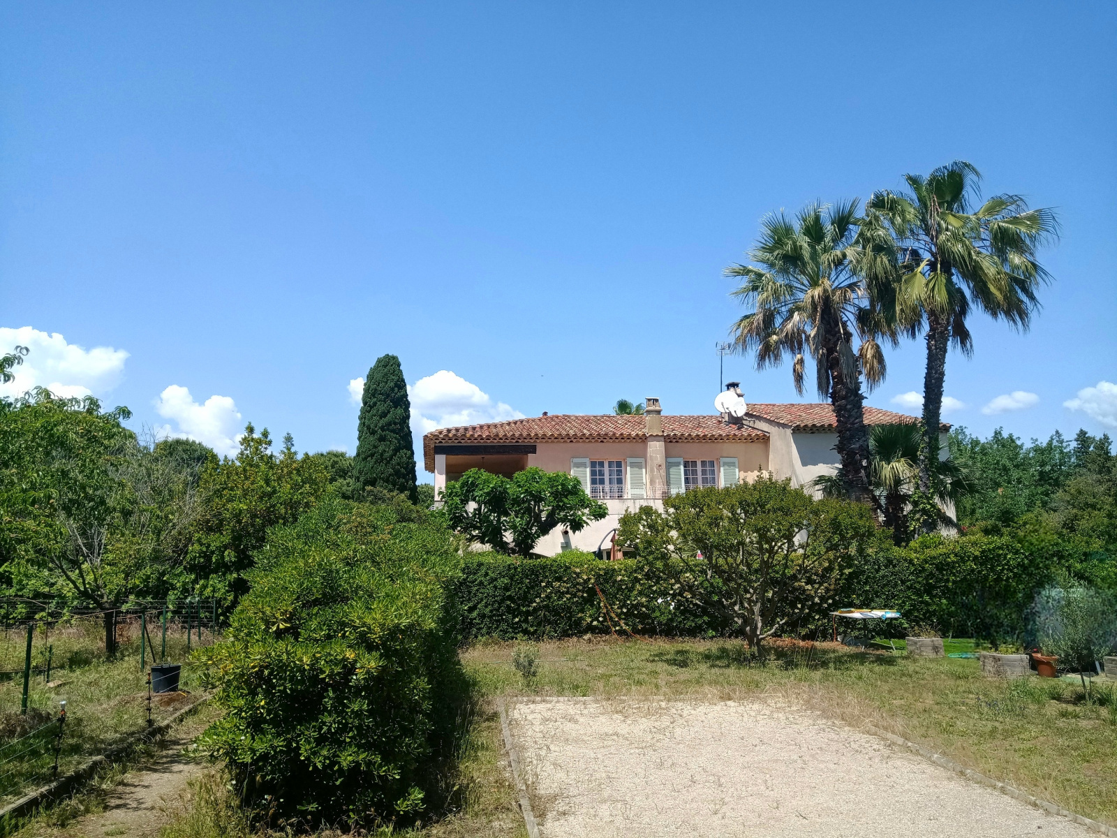 Au cœur d'un quartier résidentiel entre le village de Saint-Tropez et les plages de Pampelonne, propriété sur 5000m2 de terrain comprenant, une maison de 270m2 élevée d'un étage, comprenant au rez-de-chaussée un bureau, lingerie, 4 pièces, cuisine, salle de bains, deux chambres. A l'étage un séjour ouvrant sur une grande terrasse partiellement couverte, cuisine, wc, dégagement, trois chambres, deux salles de bains, dressing.