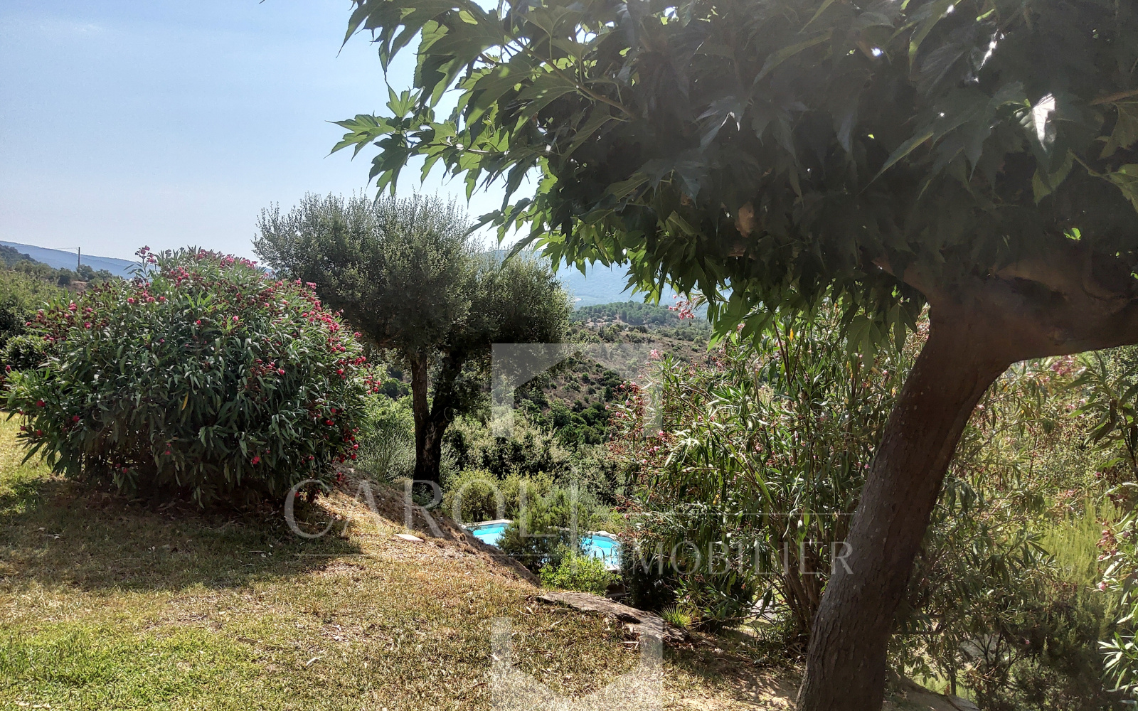 CAROLI IMMOBILIER vous propose en Exclusivité dans un cadre nature, sur 2 hectares de terrain avec piscine, une maison provencale de 5 pièces comprenant un beau séjour avec cuisine aménagée ouvrant sur une grande terrasse ombragée, 1 suite parentale, 1 bureau. A l'étage, 2 chambres avec salle de bains. Environnement calme et agréable à 2 pas du village,10mns de Sainte-Maxime et des plages. Contact : Carole PATRONE au 06.59.75.20.66 ou par mail carole@caroli-immo.com (Agent commercial au RSAC de FEJUS N912399599)